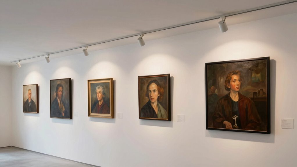 Considering the color temperature of your bulbs can also influence how the artwork appears under different lighting conditions, making it an important factor in your selection process. Lighting techniques play a vital role in how your artwork is perceived. Warm white bulbs can evoke a cozy, inviting atmosphere, while cooler tones highlight details and give a modern feel. Dimmer switches are a smart addition, allowing you to adjust the light intensity depending on the time of day or mood you want to create. Remember, the goal is to enhance the artwork without overpowering it, so choose your lights carefully based on size and style. With these installation tips and thoughtful lighting techniques, you’ll be able to showcase your artwork beautifully, making every piece stand out just as you envision.