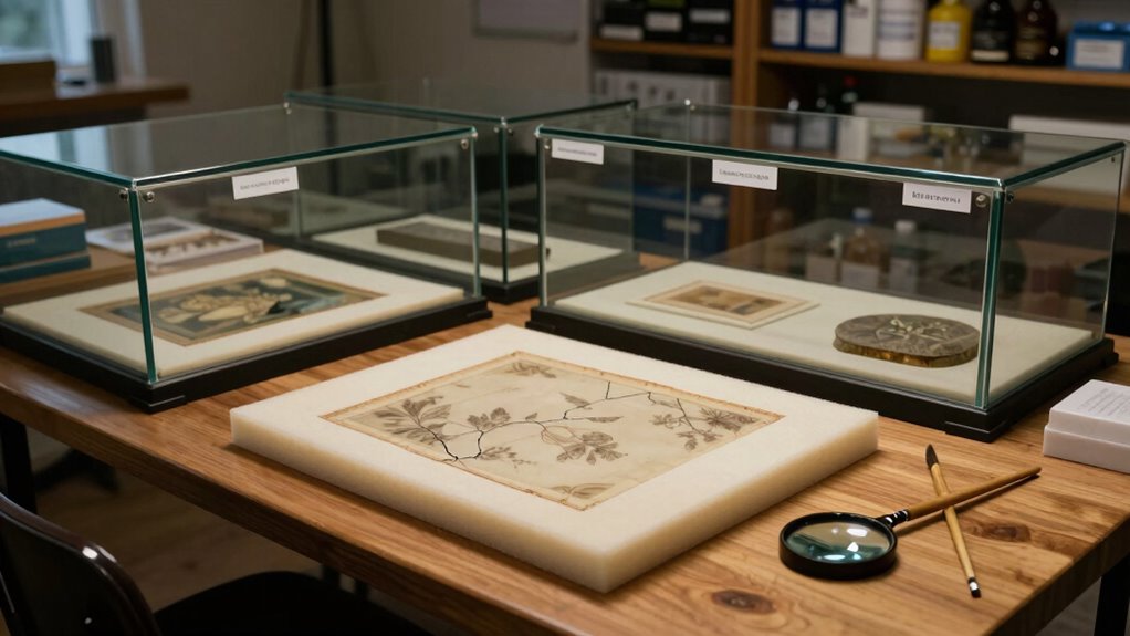 Ignoring these issues can lead to irreversible harm. Addressing mold, mildew, and water damage promptly guarantees your items are preserved safely and effectively. Proper intervention aligns with European cloud innovation, ensuring sustainable preservation practices. Additionally, consulting with a specialist conservator can help tailor solutions specific to your items’ needs, especially when dealing with delicate artifacts that require expert handling.