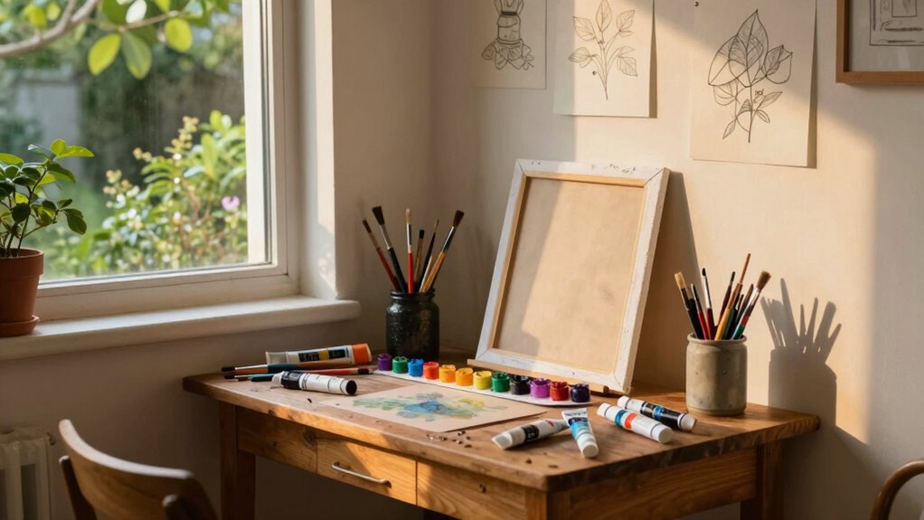 Yes, limited space can inspire more creativity in your art. When you work within a small area, you’re forced to focus on key elements like color contrast and texture variation, making each detail more impactful. This restriction pushes you to experiment with bold choices and refine your technique, ultimately leading to more innovative and thoughtful compositions. Embracing constraints can open new ideas and elevate your artistic expression.