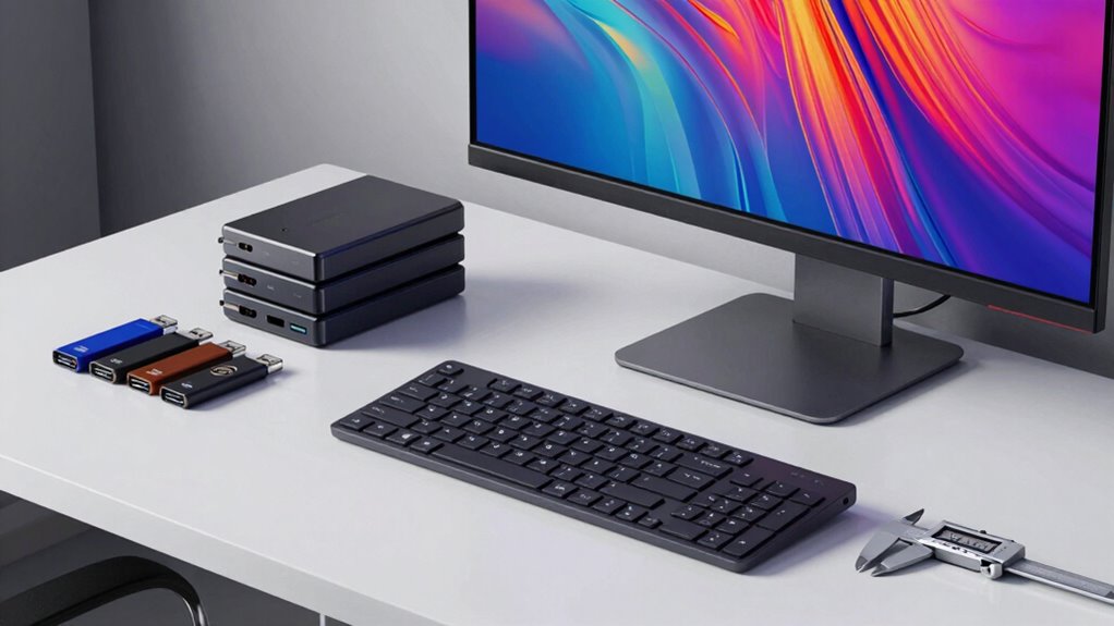 Regularly backing up your digital art files to external drives is essential for safeguarding your work against hardware failures and accidental deletions. To maximize external drive longevity, rotate your drives and avoid leaving them constantly connected, which can cause wear. Follow drive formatting best practices by using reliable file systems like exFAT or APFS to ensure compatibility across devices and minimize corruption risks. Keep your external drives in a cool, dry environment, and periodically check their health with drive utility tools. When formatting, back up existing data beforehand to prevent accidental loss. Regular maintenance and careful handling help extend your drives’ lifespan and ensure your files remain accessible over time. Additionally, proper file management strategies can help streamline your workflow and protect your digital assets. This proactive approach reduces the risk of losing valuable digital art in the future.