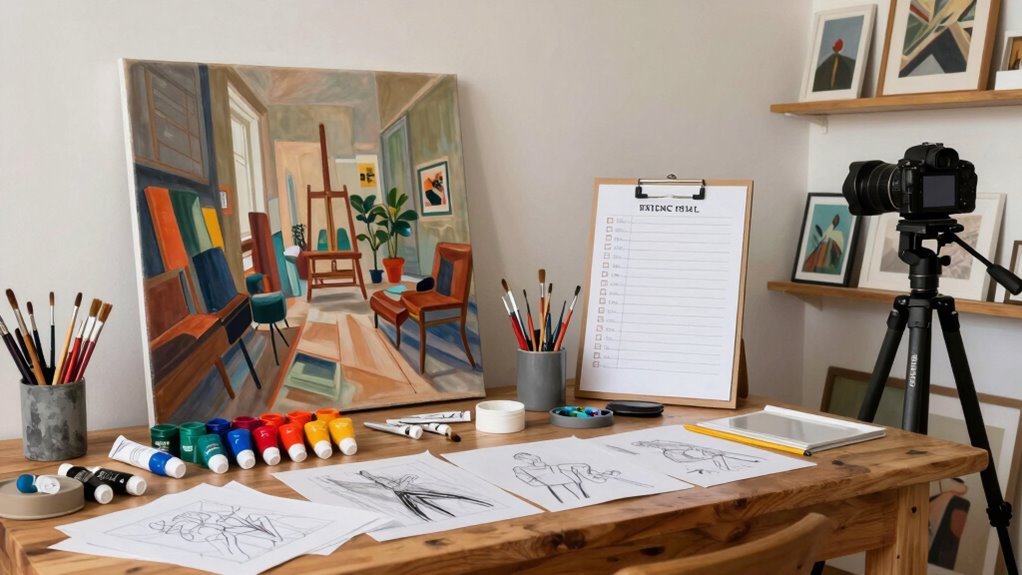 Getting your artwork ready for exhibition takes careful planning and attention to detail. By selecting, preparing, and safely handling your pieces, you guarantee they’re displayed beautifully. Proper labeling, thoughtful layout, and good lighting create an inviting atmosphere. Don’t forget to double-check everything before opening day, and review your process afterward. With these steps, you’ll make your exhibition a smooth, successful experience for both you and your visitors.