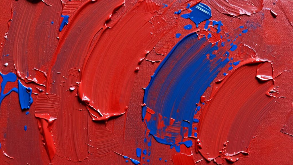 Have you ever wondered how artists create a sense of depth and emotion in their work? One powerful way they do this is through the clever use of texture. Texture transforms flat surfaces into dynamic, engaging visuals that seem to almost leap off the canvas. Artists don’t just rely on paint alone; they explore mixed media to add layers of tactile contrast, making their artwork feel alive. When you look at a piece with rich texture, it’s not just a visual experience—you can almost feel the roughness, smoothness, or ridges, engaging your senses beyond sight. This tactile contrast heightens emotional impact, drawing you into the artist’s world. Using mixed media is key to creating textured surfaces. Artists combine different materials—such as paper, fabric, sand, or found objects—with paint or ink. This blending of mediums adds physical dimension, turning a two-dimensional surface into a multi-layered story. When you observe an artwork with mixed media, you notice how certain areas pop out because of the build-up of materials, while others recede into the background. The interplay of these textures guides your eye across the piece and evokes feelings—perhaps chaos, serenity, or energy—depending on the artist’s intent. The tactile contrast gives each element a unique character, making the entire composition more engaging and emotionally resonant. Beyond mixed media, artists use various techniques to manipulate texture directly. They might apply thick impasto layers of paint to create palpable ridges or scratch into surfaces to reveal underlying layers. These methods invite you to explore the artwork not just visually but almost physically. When you touch a textured piece, you might notice how certain areas feel rough or smooth, encouraging a deeper connection. This sensory involvement makes the artwork more memorable and impactful, as it stimulates your sense of touch alongside your sight. Incorporating various techniques such as these allows artists to further emphasize the tactile qualities of their work. Additionally, understanding how texture influences perception can help viewers appreciate the emotional depth that artists aim to convey. Recognizing the role of mixed media in creating textured surfaces can deepen your appreciation for the artist’s skill and intention. Ultimately, texture breathes life into flat surfaces by adding richness and complexity. It transforms a simple canvas into a vibrant experience, inviting you to see and feel the work in multiple dimensions. Artists intentionally craft tactile contrast through mixed media and techniques like impasto or scratching, knowing it will evoke emotion and create a sense of depth. Incorporating the tactile qualities of materials can enhance the sensory richness of the artwork. When you stand before such a piece, you’re not just observing; you’re engaging with a layered, textured world that makes the artwork resonate on a profound level. That’s the magic of texture—making flat surfaces feel alive.