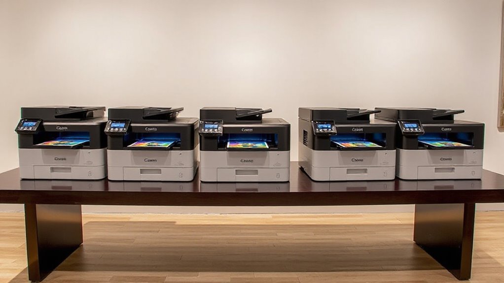 If you’re looking for the best Canon Imageprograf printers for fine art prints in 2026, I’ve got you covered. From wide-format models like the PRO-1100 and imagePROGRAF TC-21 to compact options like the PIXMA PRO-200S, these printers deliver stunning color accuracy, durable pigment inks, and versatile media handling. Each offers high resolution and user-friendly features. Keep going, and you’ll discover all the details to choose the perfect printer for your art needs.