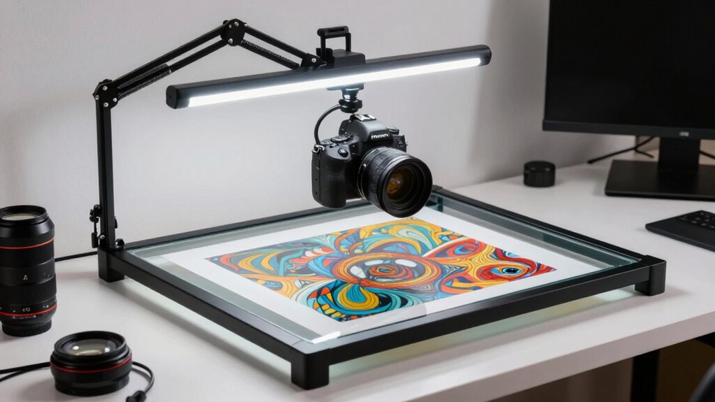 If you’re looking for the 12 best copy stands for artwork reproduction in 2026, I’ve got you covered. From compact digitizers like Mini300 and Cosmo Mini 700 to versatile easels, macro stands, and display options, there’s a solution for every need. Whether you’re capturing detailed artwork, jewelry, or scientific objects, these stands offer stability, adjustability, and lighting options to get perfect results. Keep exploring to discover even more helpful features and choices.