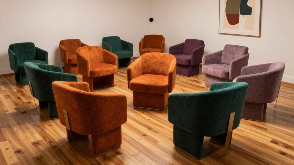 When selecting a modern accent chair for your studio lounge, durability of materials plays a crucial role in ensuring long-lasting comfort and style. I look for high-quality materials like solid wood, metal frames, or durable upholstery fabrics that stand up to daily use. Fabrics such as velvet, linen, or chenille resist wrinkling, fading, and wear, keeping the chair looking fresh over time. The frame’s construction is equally important—hardwood or reinforced metal provides strong support and prevents warping or cracking. Cushions with high-density foam retain their shape and comfort, even after prolonged sitting. Proper maintenance, like spot cleaning and occasional conditioning, can extend the life of the materials, ensuring your chair remains a functional and stylish part of your lounge for years to come.