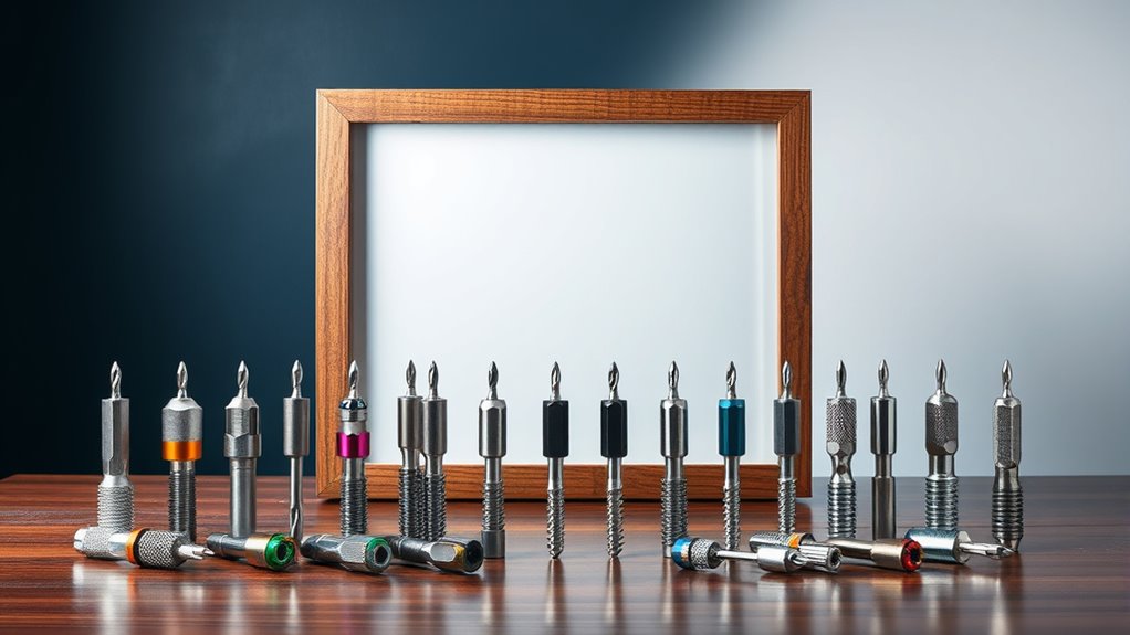 Durability and material quality considerably influence a point driver’s performance and lifespan. High-quality drivers are made from tough materials like tungsten steel, aluminum alloy, or hardened iron, ensuring they withstand frequent use without bending or breaking. Surface treatments such as polishing or quenching increase wear resistance, extending the tool’s life. A sturdy build helps maintain consistent performance, preventing issues like jamming or misfiring that can damage delicate framing materials. Investing in a well-constructed driver reduces the need for replacements, saving time and money. Material quality directly affects reliability, especially in professional framing or art projects where precise and secure fastening is essential. Overall, selecting a durable, well-made point driver guarantees long-term efficiency and dependable results.