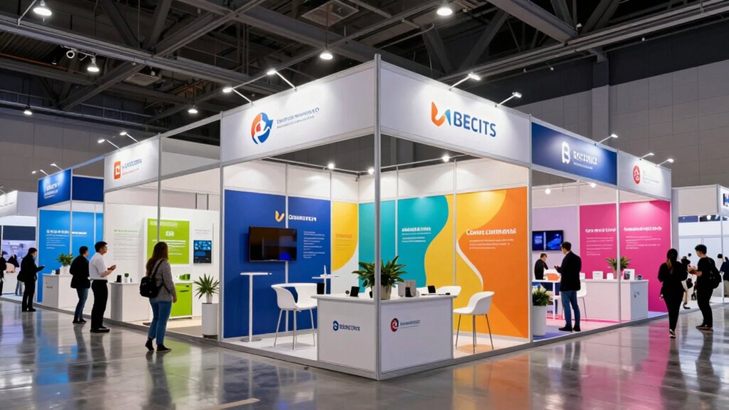 When selecting a portable exhibition booth 10×10, you should think about customization options that allow your brand to stand out. Full-color dye sublimation printing and Velcro-backed graphics give you the ability to tailor your booth’s look precisely to your branding. Modular designs with interchangeable banners and backdrops make it easy to update your display for different events or campaigns. Some booths offer personalized fabric panels or printed logos to boost brand visibility and create a unique identity. Adjustable height and configuration features provide flexibility to fit various venues and display needs. Additionally, customizable accessories like sidewalls, door panels, and lighting enhance both the aesthetic appeal and functionality of your booth, ensuring it aligns perfectly with your marketing goals.