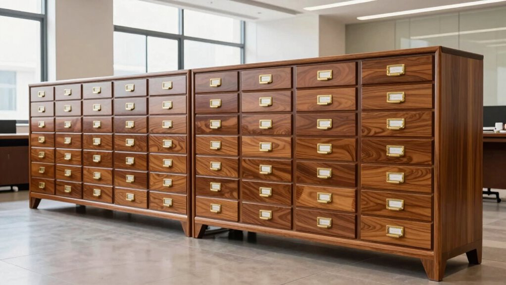 You’re in luck—most top map drawer cabinet brands offer solid warranties and reliable after-sales support. I always check for at least a one-year warranty covering parts and craftsmanship. Many companies provide responsive customer service, easy-to-reach support lines, and even on-site repairs if needed. It’s like having an ace up your sleeve, giving you peace of mind knowing you’re backed by a company that stands behind its products.