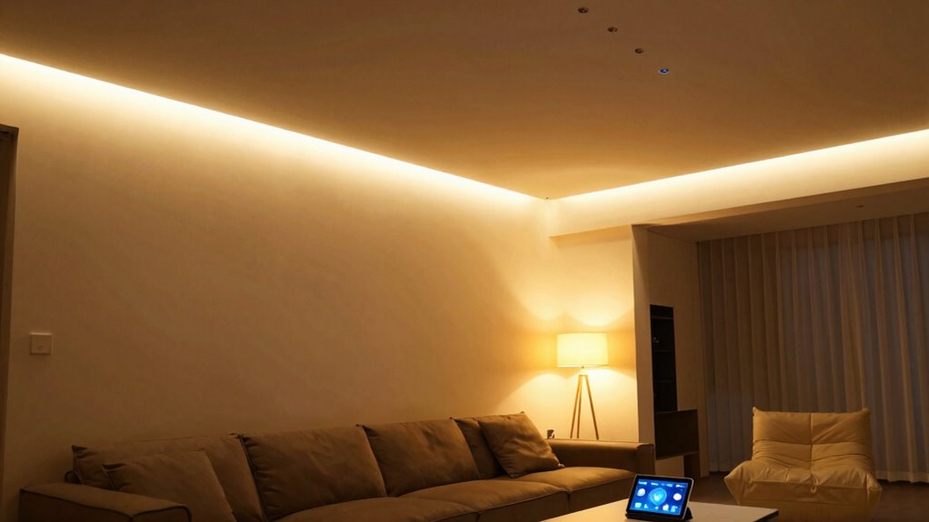 Customization features are key to creating the perfect ambiance throughout your home, and many smart lighting systems now offer a variety of options to personalize your experience. You can easily change colors, adjust brightness, or choose scene modes to set the mood for different occasions. Many systems support tunable white light, letting you select warm tones for relaxation or cool tones for productivity. Scene modes often preset effects like nature, holiday, or party themes, which you can activate with a tap or voice command. Some systems even let you create and save your own lighting setups, customizing them for specific times or events. Compatibility with voice assistants like Alexa, Google, or Siri enhances control, making personalization seamless and intuitive.